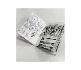 Natürlich hat die Zeit die Farbe an den Wänden verblassen lassen – die Foto-Reproduktionen des Zimmers entstanden erst 2021 – und auch Gerüche lassen sich leider schlecht reproduzieren, nur ungefähr imaginieren: Mitbewohner Werner jedenfalls, eine frei herumlaufende Ratte, hat sich nicht nur in angeknabberten Schulheften verewigt [(°◡°)] und wurde von der Künstlerin gelegentlich auch zu Lesungen mitgenommen—